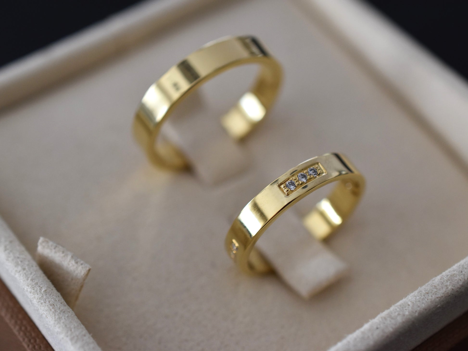 Poročni prstani so individualno izdelani za vsak par. Izdelani so lahko iz belega, rumenega ali rdečega zlata ali v kombinaciji.