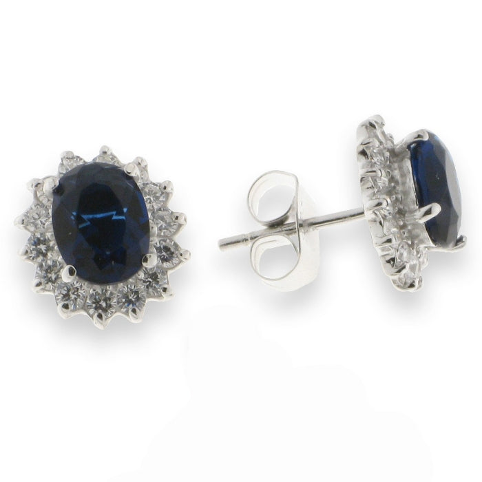 Uhani z modrimi kamni iz srebra čistine 925/1000, rodinirano.