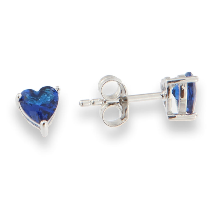 Uhani s temno modrimi cirkoni v obliki srčka iz visokokakovostnega srebra čistine 925/1000, rodinirano.