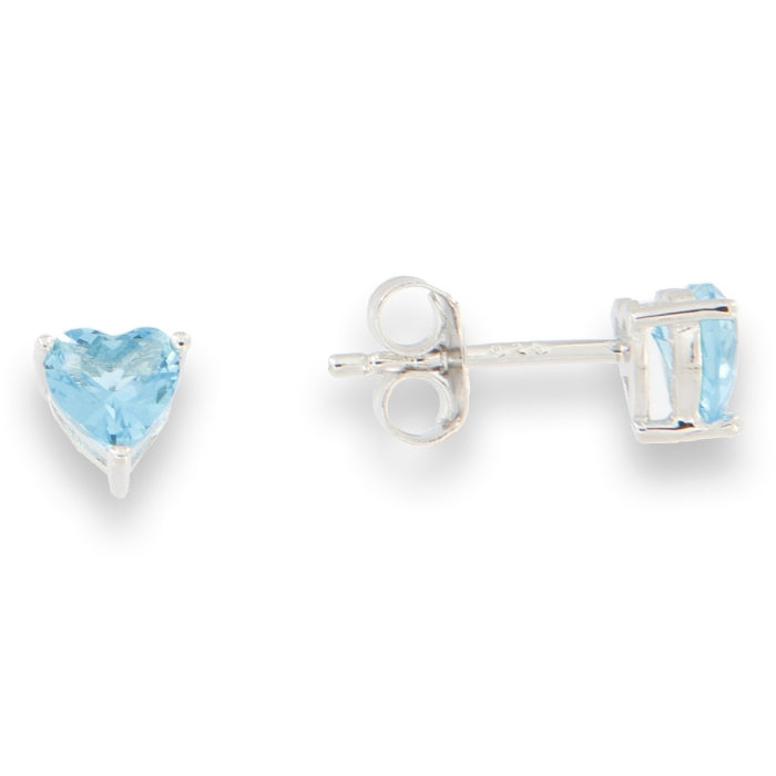Uhani s svetlo modrimi cirkoni v obliki srčka iz visokokakovostnega srebra čistine 925/000, rodinirano.